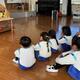 12月17日(水)竹細工づくりがありました。東浅羽地区西部老人クラブ会長の寺井さんを中心に3名の方が来てくださいました。 まずは、お願いしますの挨拶をしました。 寺井さんから竹細工を受け取り、‟この竹細工は、みんなの顔であること”そして、‟笑顔の顔を描こう”と教えてもらいました。 にこにこ笑顔になるように目や口を描いたり、台紙や旗に思い思いの絵を描きました。 ぽっくりにも絵を描き、早速乗って遊びました。 出来上がった竹細工と記念写真!! ~みんな素敵な笑顔になりました。ぜひ、家で飾ってくださいね~ 竹細工づくりの後は・・・。 焼き芋を作ってくださり、大黒様(寺井さん)から一人ずついただきました。 出来立て熱々の焼き芋をみんなでいただきました!! どの子も夢中になって食べる姿が見られました。 竹細工づくりに焼き芋と、貴重な体験をさせてもらった子どもたち。みんなで心を込めてお礼をしました。 寺井さんから、17名子どもたち全員の顔と先生の竹細工をいただきました。この竹細工に負けないように、これからも子どもたちと、笑顔いっぱい・元気いっぱいの園生活を送っていきたいと思います。 ~寺井さん・老人クラブの皆様、子どもたちのために貴重な経験・体験をさせていただき、本当にありがとうございました~