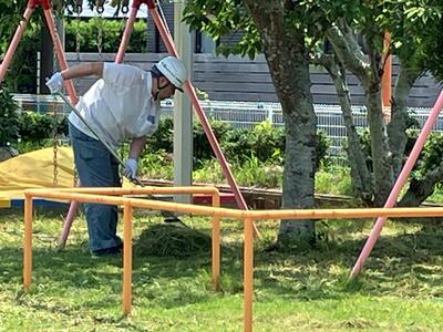 昨年度に引き続き、マルブンプロテクトの方々がボランティアに来てくださり、園庭の草刈りをしてくれました。