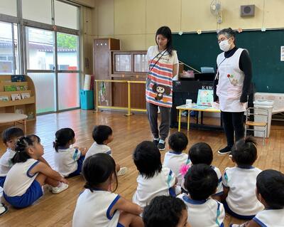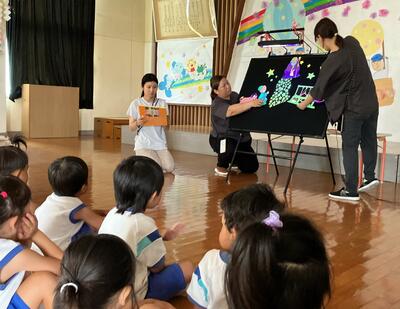 紙芝居のように、園長先生が2学期楽しいことがたくさんあることをこどもたちにお話してくれました。