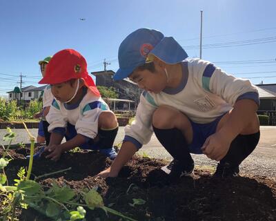 6月にサツマイモのつるさしをしてから、毎日水掛けをしながらサツマイモの生長を見守ってきた子どもたち。先日、待ちに待った収穫を行いました。