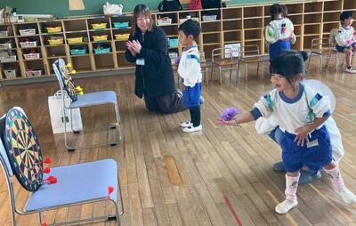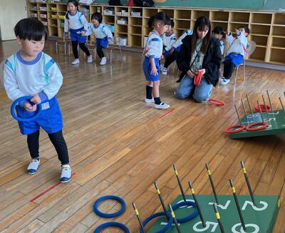 輪がいくつ入るかな?一生懸命狙って投げる姿が見られました。