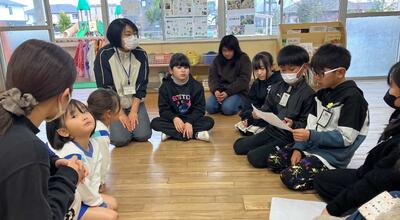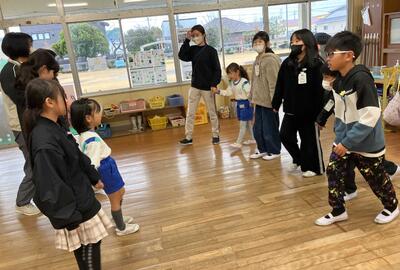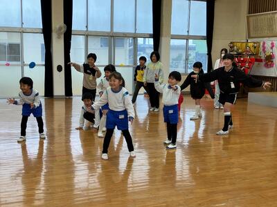最初は、お互いに緊張している様子でしたが、「はないちもんめ・ハンカチ落とし・だるまさんが転んだ」などの遊びをする中で打ち解け、笑顔が多く見られるようになりました。