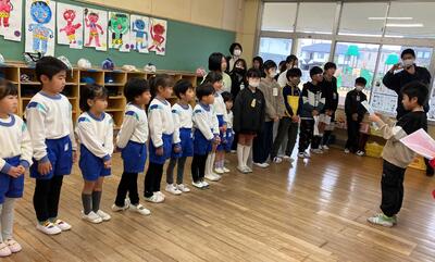 ~今回の交流で、「幼稚園の子は、どんなことをしたら喜んでくれるのか。」 「どんな遊びをしたらよいか。」などを考え、優しく遊んでくれた4年生のみなさん!本当にありがとうございました!!」~