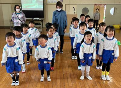 ~4月からあっという間に1年が経ちました。修了式の子どもたちの姿を見ると、話をしている人を見て話が聞けるようになっていたり、良い姿勢で話が聞けたり、元気な挨拶ができたり・・・本当にたくさんの成長を感じることができました。いよいよ4月からは、就学・進級と1つ大きくなります。今後の一人一人の成長がとても楽しみです!1年間ありがとうございました!!~