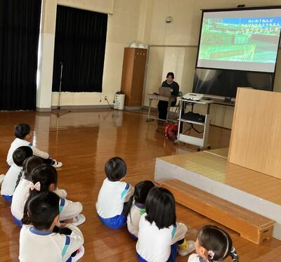 スクリーンを使って、園長先生の話がありました。