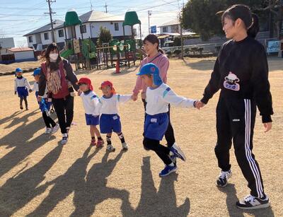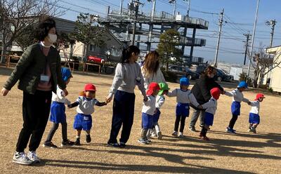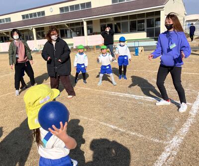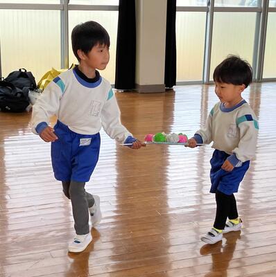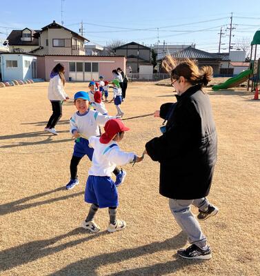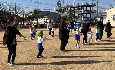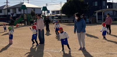 ~年中さんも、年長さんも、大好きなお家の人にできるようになったことを見てもらったり、一緒に遊んでもらったりして大満足の参加会を過ごすことができました。お家の人が帰る時には「バイバーイ」と笑顔で見送る姿に成長とたくましさを感じました。お家の方、寒い中でのご参加ありがとうございました‼~