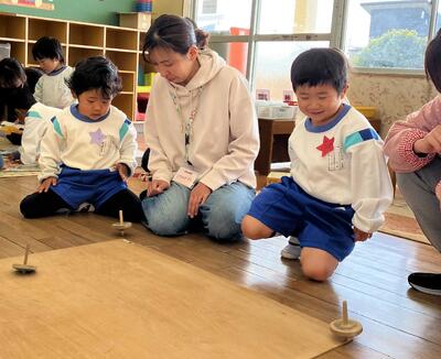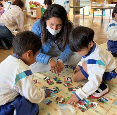 お部屋の中では、こまやカードゲームなど普段楽しんでいる遊びを一緒に行いました。お家の人と、自分の好きな遊びを一緒にできてどの子もとても嬉しそうでした。