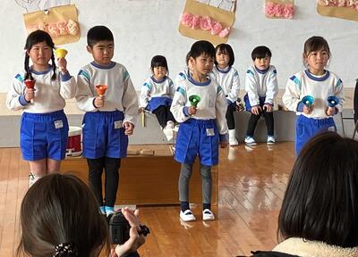 ~4月からあっという間に1年が経ちました。修了式の子どもたちの姿を見ると、話をしている人を見て話が聞けるようになっていたり、良い姿勢で話が聞けたり、元気な挨拶ができたり・・・本当にたくさんの成長を感じることができました。いよいよ4月からは、就学・進級と1つ大きくなります。今後の一人一人の成長がとても楽しみです!1年間ありがとうございました!!~