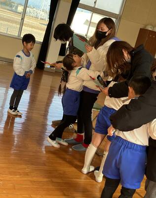 ~授業体験をさせてもらい、最初はどの子も緊張した様子でしたが、優しく教えてくれるお兄さん・お姉さんのおかげで徐々に緊張もほぐれ、ドキドキしながらもたくさん褒めてもらって楽しく取り組むことができました。この体験を通して、小学校への入学が、より楽しみになった子どもたちでした。1年生のお兄さん・お姉さんありがとうございました‼~